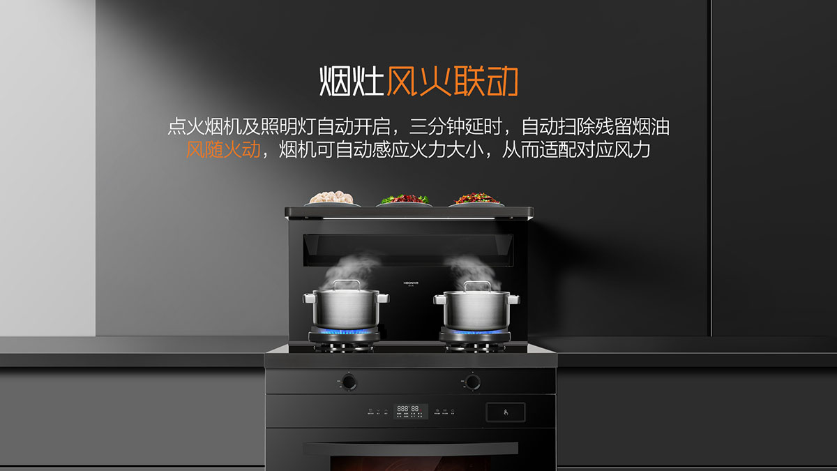 煙灶聯動,點火自動同步開啟油煙機