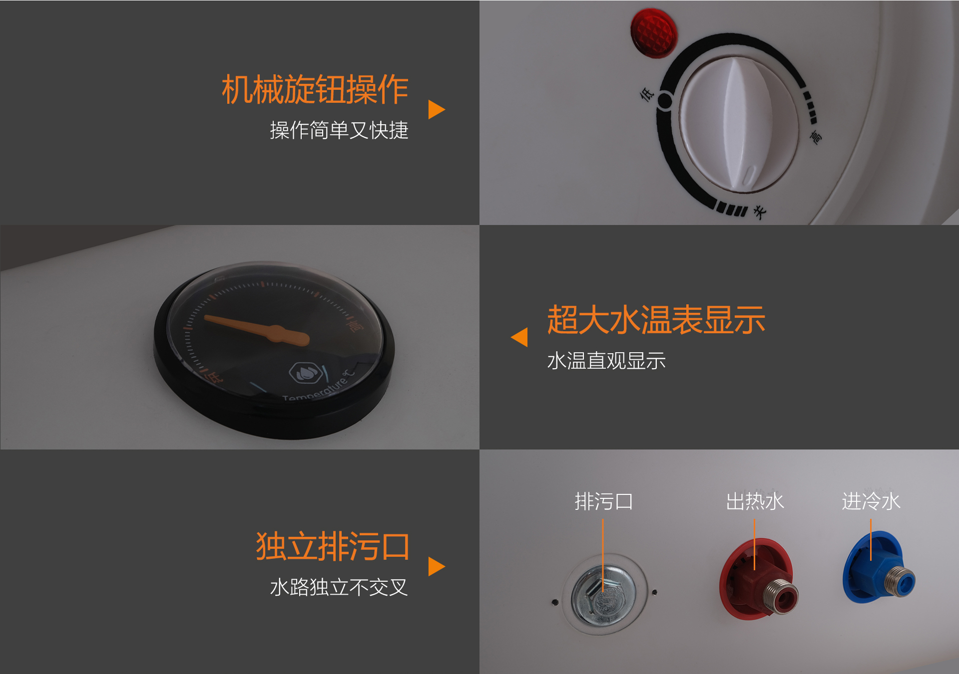 可視外置水溫表一目了然,設(shè)計(jì)簡潔直觀